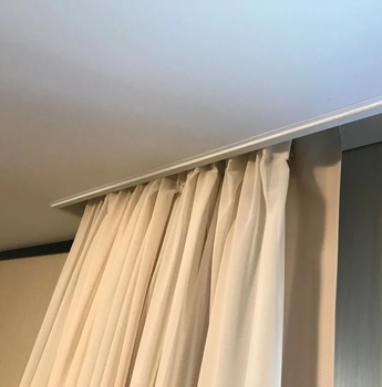 Выполняем работы по установке закладных под потолочные карнизы и крепления карниза к потолку. Также делаем потолки со скрытой гардиной или карнизом.