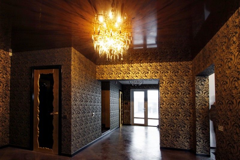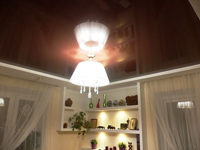 К тому же, бежевый натяжной потолок более выгодно оттеняет потолочные светильники, на бежевом фоне будут отлично смотреться, например, хрустальные светильники или светильники, выполненные в цвете «античная бронза».
